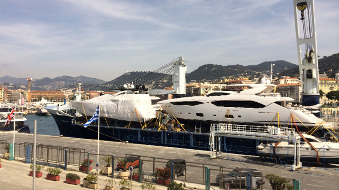 March 31st was another interesting day here for the SYM team when the M/V Eendracht headed into the old port of Nice with two brand new SYM managed Sunseeker motoryachts onboard.